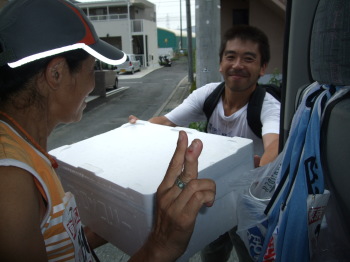 | 古田榮男さんのアピールゼッケン | 今日から参加される石垣さんです |