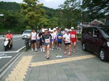 | 米原駅からは、滋賀県連盟の方たちがサポート | ランナーだけでなく、車での道案内も |