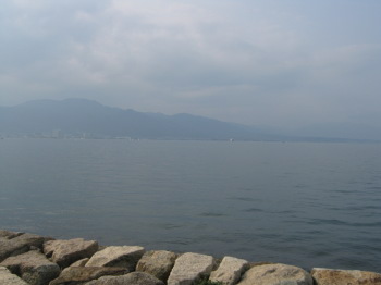 | 午後3時過ぎに琵琶湖到着。広ーい! | 湖を一望できるなぎさ公園をみんなで走りました |