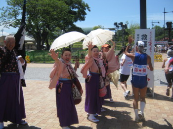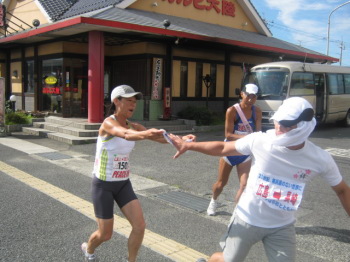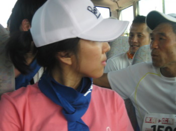 | 朝から走ります、、コリアンチーム | 歌姫も激走!トップでタスキをつなぎました。 |