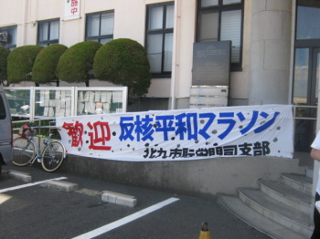 | バッチリですねヽ(^o^)丿(笑) | 門司区役所前では横断幕を掲げて迎えてくれました |