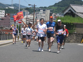 | 東京からの参加者、川沢さん写せなくてスミマセン。 | さぁ、明日が最終日!今まで受けた声援と肩に背負って、反核平和マラソン |