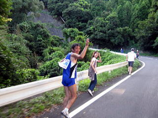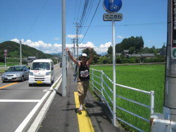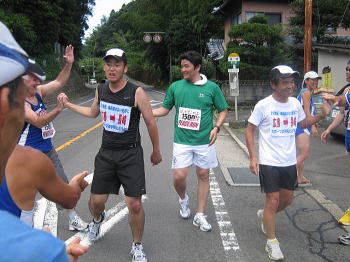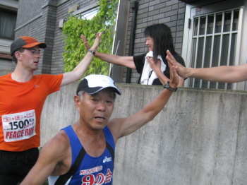 沿道の方達とハイタッチ! |