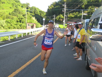 | 先頭ランナーは川沢祥三さんです! |