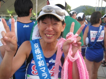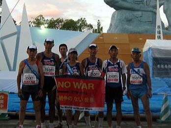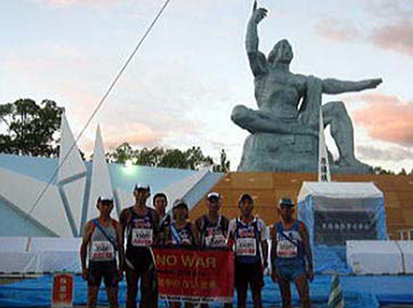 | 平和祈念像に今回のマラソンの報告を行います |