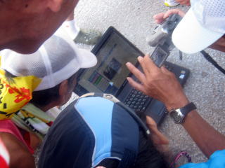 | スタート前に昨日放映されたテレビの内容をみんなで食い入るように観てます。 | 今日がラストランの今野さんと古田さん |