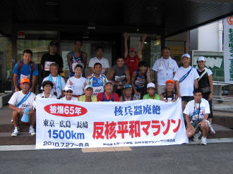 | 朝イチで元気に出発したピースランナー | 要員の方のご協力が本当にありがたいです。 |