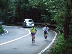 ・吉成克実さん:箱根の山を見たら、思わず走ってしまいました。(吉成さんは現場責任者を務めています)風が爽やかで、疲れもふっとびました。前半の最大の難所の箱根の山越えをでしたが、みんなのチームワークでテンポよく乗り切れて良かったです。