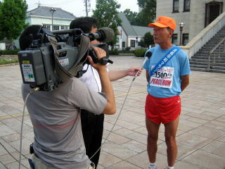 また、スタート前からNHKの取材が入り、1時間ほどマラソンの様子も撮影。お昼ころにはオンエアされるそうです。しかし、今日は広島までの間で最長の110Kmという長丁場。愛知県連盟のサポートランナーの力も借り、岐阜を目指しピースランナーは走り続けます。