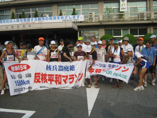 ・武田常義さん(びわこランナーズ所属):反核平和マラソンには初めて参加することができました。暑い中でしたが、65年前の原爆の辛さに比べれば楽です。スポーツで平和な社会に貢献したいですね。