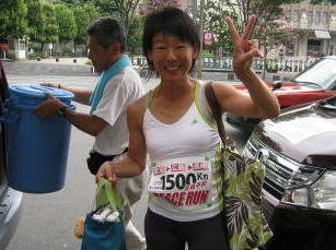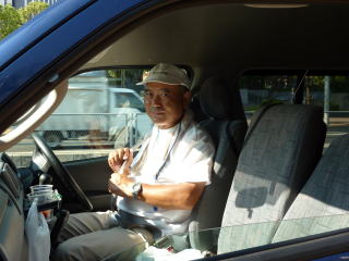| 車中もすごく暑い!高橋さん、毎日運転本当にお疲れ様です | ゴールの明石市役所ではRUNNERS9の会尾方素子会長にあいさつを頂きました。 |