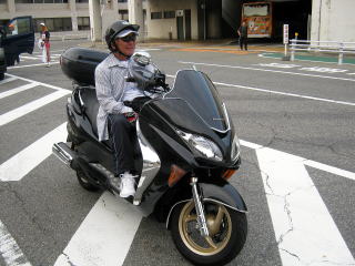 | 今日も先導は兵庫県連盟の山下良樹事務局長です。ライダー姿がかっこいいですね | 昨日ほとんど走れなかったたぶん、今日は私、渡辺も朝イチから走ります! |