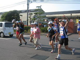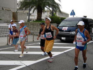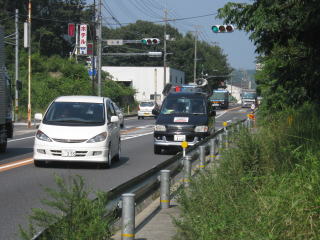 | 岡山県に入り、兵庫県連盟の方たちとはお別れです。猛暑の中連日本当に感謝いたします | 今日は道も狭く、大型車も多い。今回のマラソンの一番危険なコースでした。 |