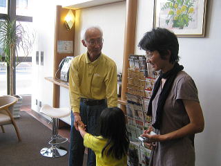 | 様々な悪条件を跳ね返し、予定より1時間以上も早く瀬戸内市役所前に到着しました | 宿舎には川沢さんの娘さん、お孫さんが。やさしいお顔がそっくりな親子ですね |