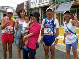 | 道まで飛び出して応援しに来ていただくこともしょっちゅうえした。辻さん、泣きそうです。 | ゴールでも岡本さんの出迎えを受けました。差し入れの梅もありがとうございました |