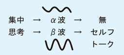 α波と反するものがβ波です。これは、思考状態や緊張状態のことです。そして、「無」の状態に対応するのが「セルフトーク」、頭のなかでのおしゃべりです。
