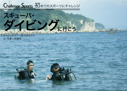 真夏の太陽が戻ってきた。10日間続いた寒さと豪雨が去って、まぶしい太陽と夏の暑さが帰ってきた。快晴で海には波もない、遠くで発電用の白い風車がゆっくりと回り、トンビが頭上で輪を描いている。ダイビング日和とはこんな日を言うのかもしれない。今回のチャレンジャーは東京都連盟の渡辺良治君、プロボクサーをめざしてトレーニングに励む青年だ。