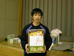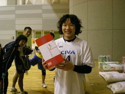 惜しくも敗者戦でも負けてしまったチームには「次はキット勝つ」(笑)。そして、優勝チームは、賞状、ボール、新春大会の招待、ポカリスエット24本入り1箱、お米5キロ。準優勝チームには、賞状、お米5キロ、カップラーメン1箱、クーラーバック。3位 2チームには、ジンジャーエール24本1箱ずつ。