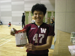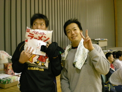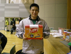 さらに、敗者戦でもトーナメント戦でも一勝したら「まずは一勝」賞品♪ うまい棒60本や、ベビースターラーメン大袋や、サッポロポテト詰め合わせ等々。それは、終わったチームからクジを引いて貰い何が当たるかお楽しみ♪