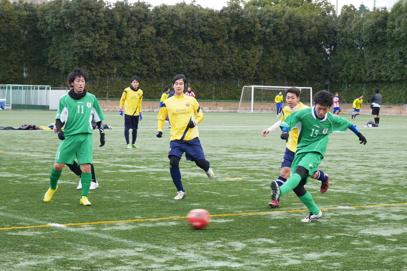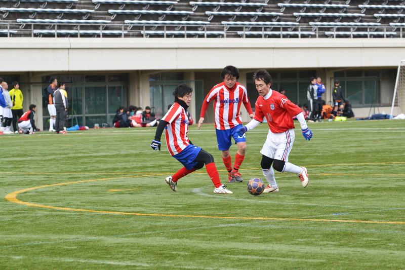 2014年1月13日、大阪・鶴見緑地球技場で「第18回大阪フット・ア・セット大会・第8回女子フット・ア・セット大会」が開催されました。フット・ア・セットとは、セルフジャッジ(審判なし)で試合を進行する7人制サッカーのこと(11人制サッカーの半分のコートで行う、メンバー交代は自由、タックルやスライディングは禁止、オフサイドなし)。一般の部に9チーム、OVER40(40歳以上)の部に6チーム、女子の部に6チームが集まり、寒空のなか熱いゲームが展開されました。