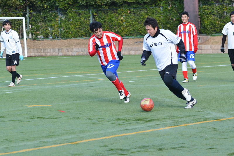 OVER40の部で優勝したのはAxelle。一般の部はHISTORIA-Bが、ラストの試合で同士討ちを制して優勝を果たしました。参加者からは、「Jリーグが始まる前からのチームで、ギャンブラーのようにイチかバチか攻めるのが特徴です。もうサッカーしていないメンバーも集めて、同窓会のような感じで参加しました。いつも通り(?)なかなか動けません。(Gambler)」「10年以上、一緒にサッカーしている仲間です。今回は、運動量不足ですね。もっと練習を増やしていきたいです。(スタジオヒロシ)」という感想がありました。