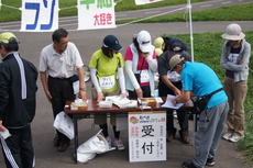 裏方を守ってくれたのは、各団体の役員さん。ランナーの前を走る自転車、本部や折返し地点で健康管理と給水をしてくださった医師や看護師の救急班や走路班、受付...、総勢25名ほど、本当に頑張っていました。