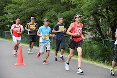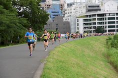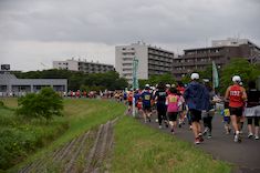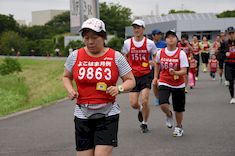 毎月の参加者数は約1、500名で年間20、000名の大会となっています。コースは専用コースではないので通行人には特に気を使いトラブルが起きないように開催しています。役員はボランティアを含めて50名体制でこなしています。記録はバーコードを用いて即時に名前入りで掲示できるシステムで参加者の方に喜んで貰えるように心掛けています。これからはチップを開発して更に記録処理がスピーディーに行えるように考えています。