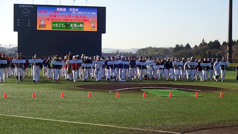 秋晴れの絶好の天候に恵まれた第26回全国ソフトボール大会が2016年11月5~6日(土・日)に岐阜県可児市で開催されました。北は東北福島県から南は四国高知県の15府県16チーム(初出場5チーム)によるトーナメント形式で行われました。