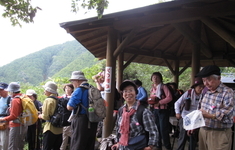 馬越峠に引き返し「意外と簡単だったね」の声に笑い声。下山も陽気な雰囲気で、途中「桜地蔵」「馬越不動滝」に立ち寄り、尾鷲神社に到着。遅い昼食となりました。皆さん、良き山歩きを。