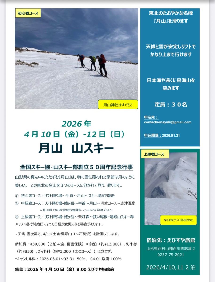 全国スキー協・山スキー部設立50周年記念行事 月山 山スキー