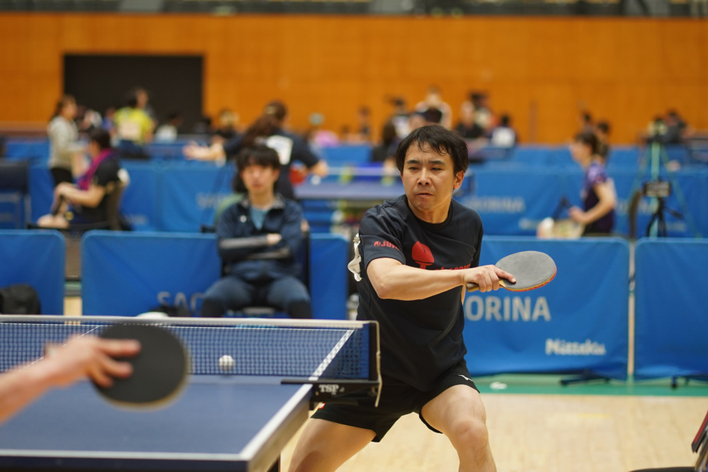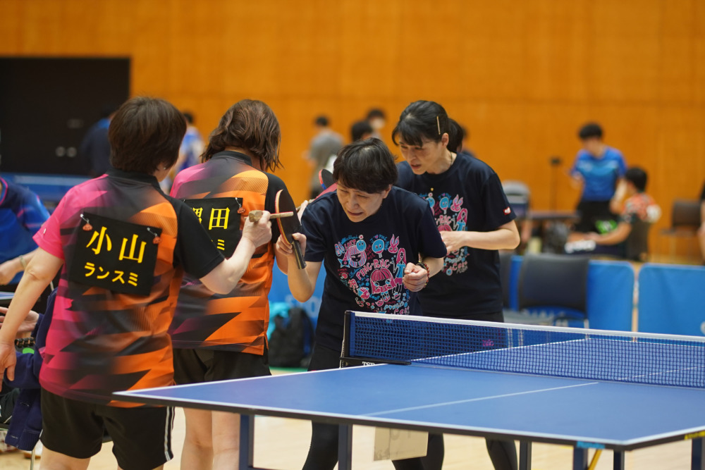 大会運営委員長の相馬常吉さんは「とにかく楽しく、楽しく、楽しくプレイしてください」と明るくあいさつ。参加者からは「どの年代になってもチームメイトたちと卓球を楽しめるようにしたい」「負けてしまったけど、やりきった」「他の選手の試合を見ているだけでも面白い」などの声がありました。