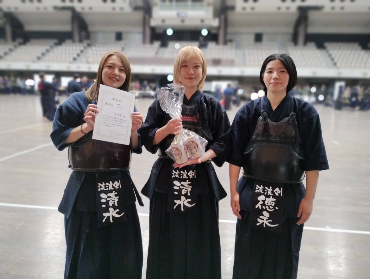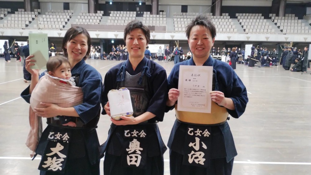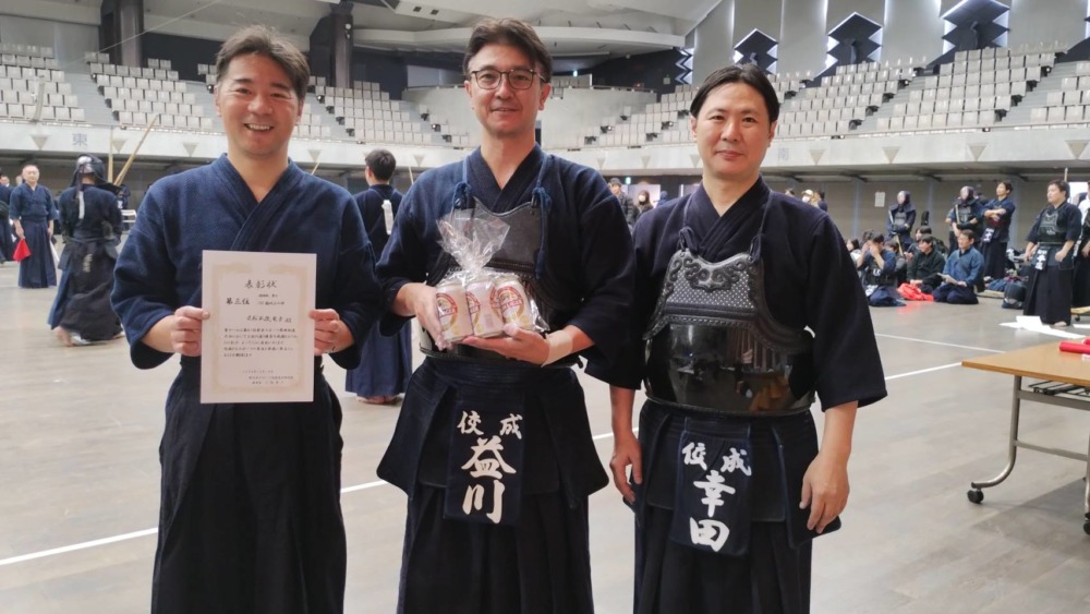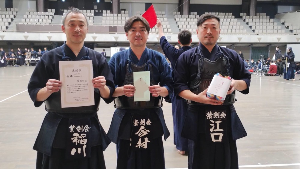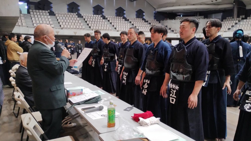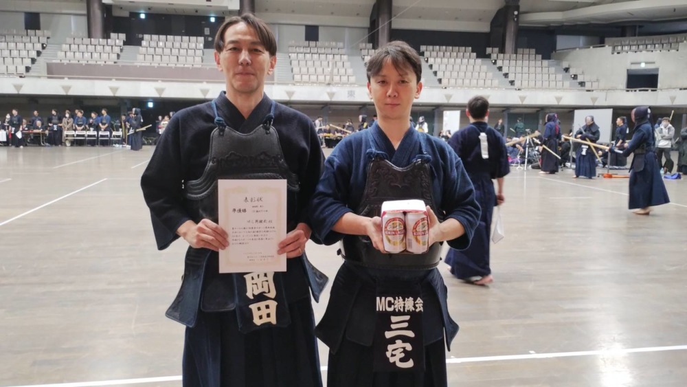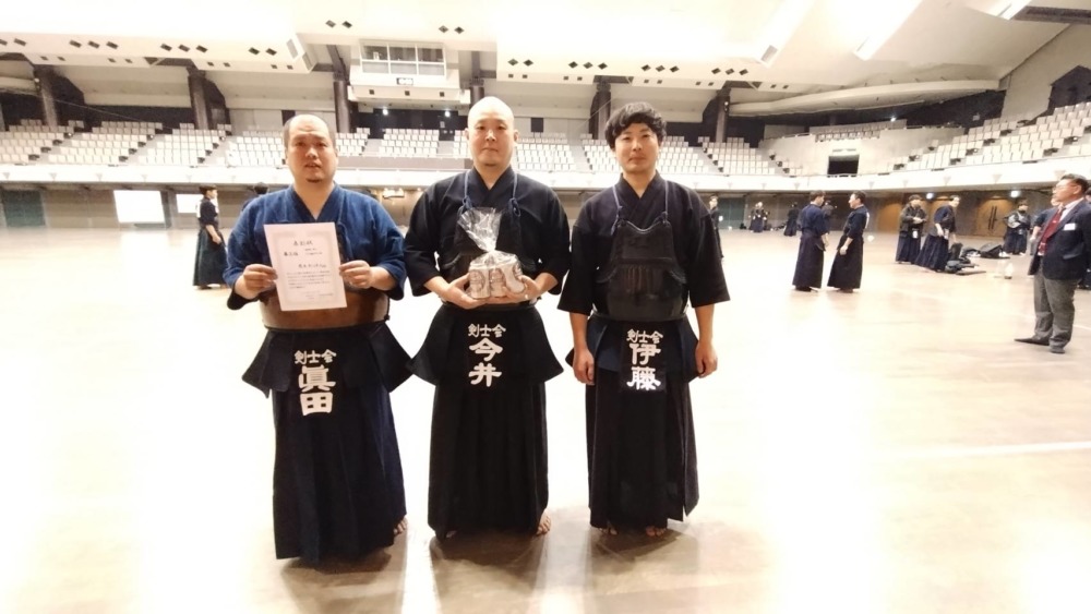 一般男子119歳以下の決勝戦はChains kと石岡剣道クラブで行われ、最後は代表者による無制限一本勝負までもつれ込みました。張りつめた空気が会場に流れる中、10分にも及ぶ伯仲の試合を最後に制したのはChains Kの外丸選手でした。一般男子120歳以上の部の優勝は紫剣会が、女子の部は乙女会が優勝しました。