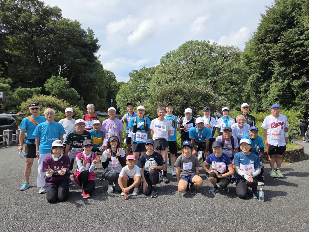 2025年9月28日、京都市内で「第44回京都反核・反原発平和マラソン」が開催され、27人が参加しました。11時30分に梨木神社前をスタートし、銀閣寺道~哲学の道~南禅寺~平安神宮前~梨木神社前までの9.5㎞のコースを小学生2人から中学生、78歳のベテランまで幅広い年代の24人のランナー(自転車1人・エイドカー2人)たちが反核・反原発・平和を訴えて駆け抜けました。