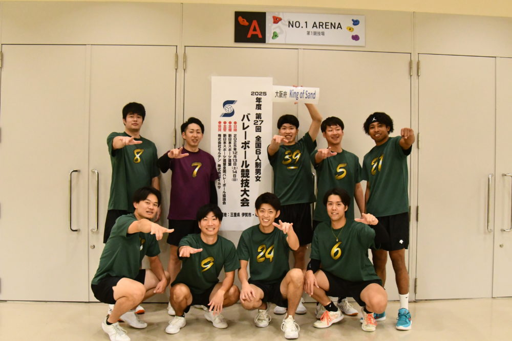 2025年12月13~14日、三重県・DMGMORIアリーナ、伊賀市民体育館、B&G関海洋センターの3会場で「第27回全国6人制男女バレーボール競技大会(男子)」が開催されました。20都府県から42チームが参加。1日目は予選グループリーグ、2日目は決勝トーナメントが行われました。