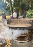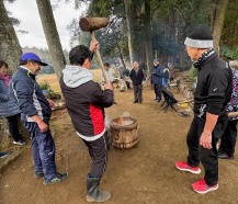 12月27日、千葉県ウォーキング協議会主管による「千葉の里山体験交流会」が開催され、餅つき大会とミニ門松作りを行いました。 会場は千葉市若葉区の「木漏れ日の里」。東京・神奈川・千葉の各ウオーキングクラブから、計28名が参加。