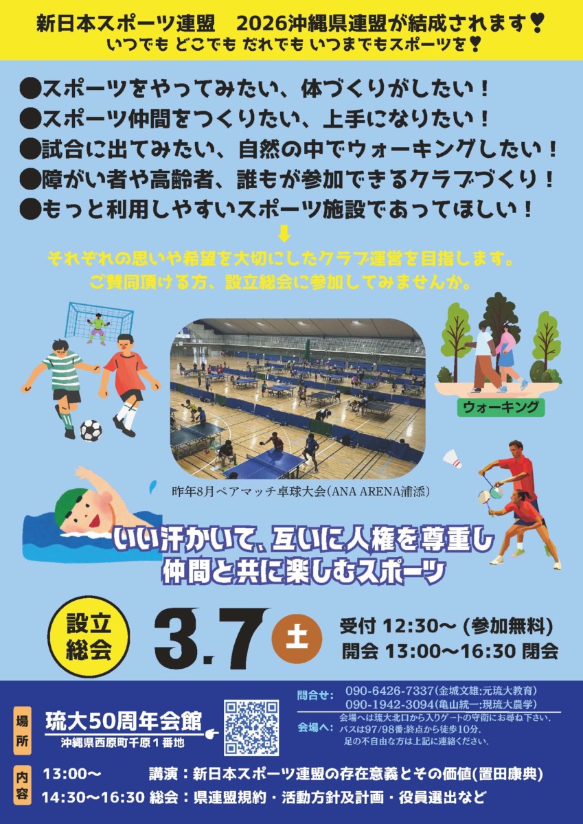2026年3月7日、新スポ連沖縄県連盟の結成総会が行われます。